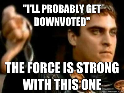 "I'll probably get downvoted" The force is strong with this one