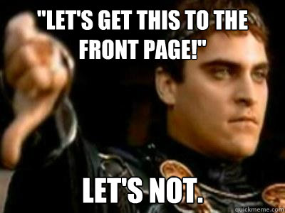 "Let's get this to the front page!" Let's not.