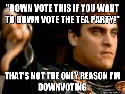"Down vote this if you want to down vote the Tea Party!" That's not the only reason i'm downvoting