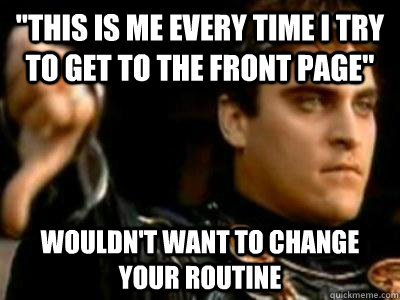 "this is me every time i try to get to the front page" Wouldn't want to change your routine