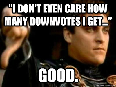 "I don't even care how many downvotes I get..." good.