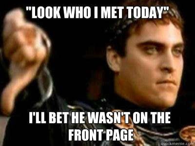 "Look who I met today" I'll bet he wasn't on the front page