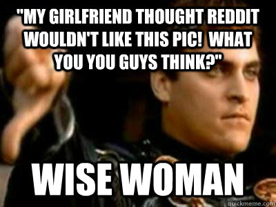"My girlfriend thought Reddit wouldn't like this pic! What you you guys think?" Wise Woman