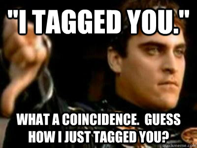 "I tagged you." What a coincidence. Guess how I just tagged you?