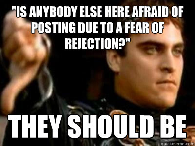 "Is anybody else here afraid of posting due to a fear of rejection?" They should be