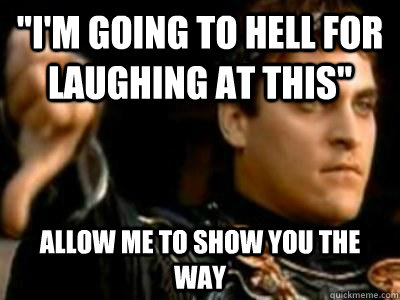 "I'm going to hell for laughing at this" Allow me to show you the way