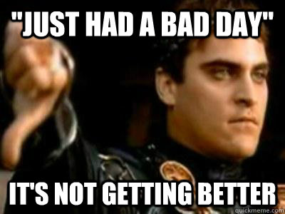 "Just had a bad day" It's not getting better