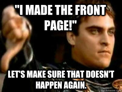"I MADE THE FRONT PAGE!" Let's make sure that doesn't happen again.