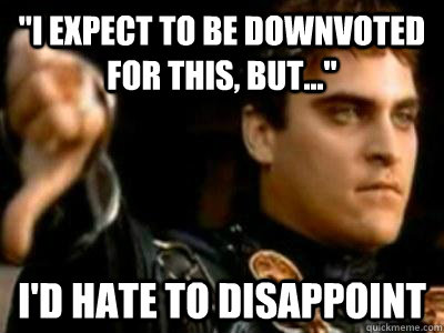 "i expect to be downvoted for this, but..." I'd hate to disappoint