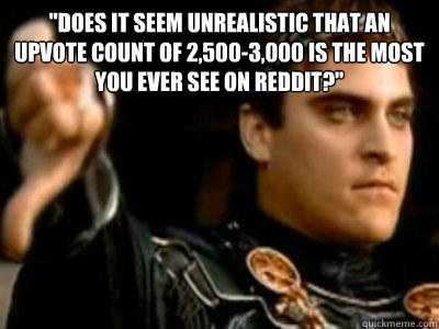 "Does it seem unrealistic that an upvote count of 2,500-3,000 is the most you ever see on Reddit?"