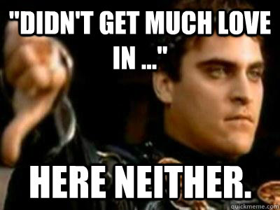 "Didn't get much love in ..." Here neither.