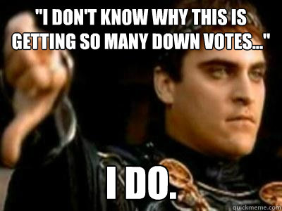"I don't know why this is getting so many down votes..." I do.