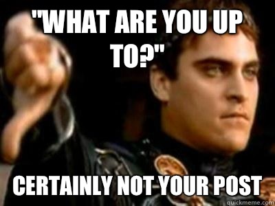 "What are you up to?" Certainly not your post