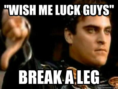 "Wish me luck guys" Break a leg