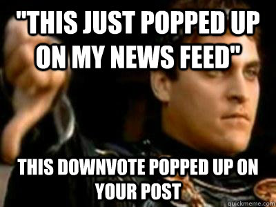 "THIS just popped up on my news feed" This downvote popped up on your post