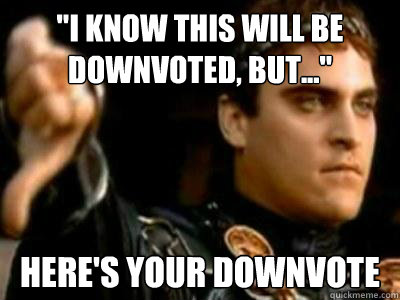 "I know this will be downvoted, but..." Here's your downvote