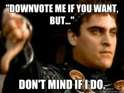 "Downvote me if you want, but..." Don't mind if I do.