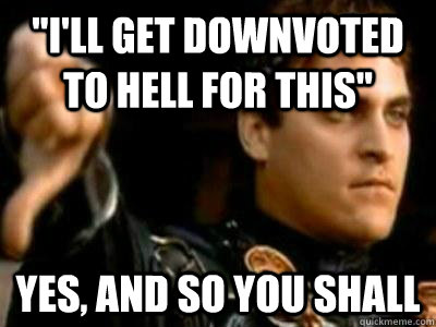 "I'll get downvoted to hell for this" Yes, and so you shall