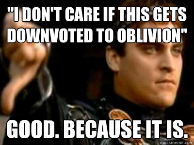 "I don't care if this gets downvoted to oblivion" Good. Because it is.