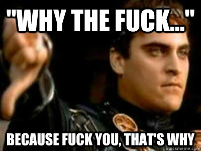 "Why the fuck..." BECAUSE FUCK YOU, THAT'S WHY