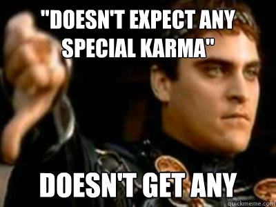 "Doesn't Expect Any special karma" Doesn't get any