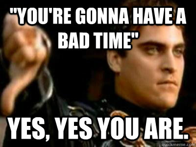 "you're gonna have a bad time" Yes, yes you are.