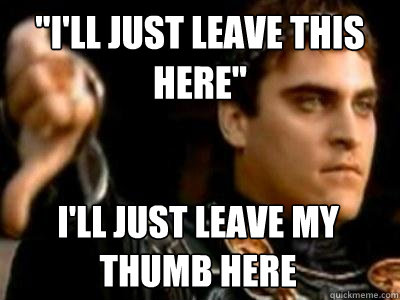 "I'll just leave this here" I'll just leave my thumb here