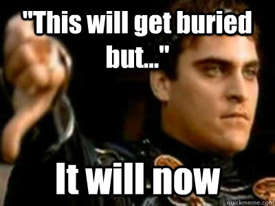 "This will get buried but..." It will now