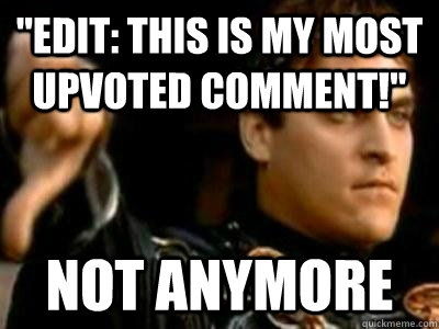 "edit: this is my most upvoted comment!" Not anymore