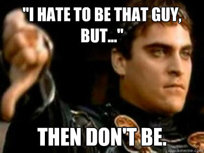 "I hate to be that guy, but..." THEN DON'T BE.