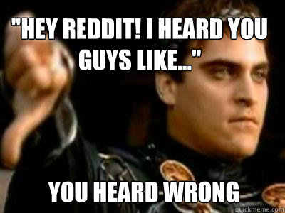 "Hey Reddit! I heard you guys like..." You heard wrong