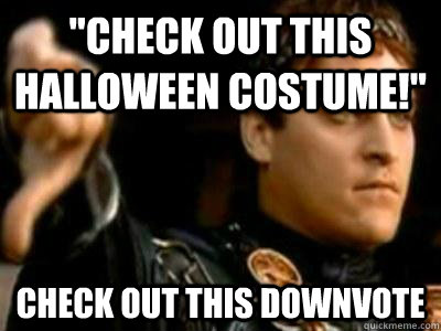 "Check out this Halloween costume!" Check out this downvote