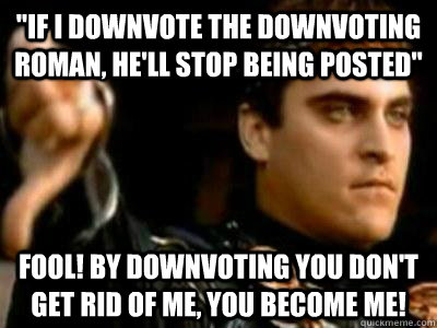 "If I Downvote the Downvoting Roman, He'll Stop Being Posted" Fool! By downvoting you don't get rid of me, you become me!
