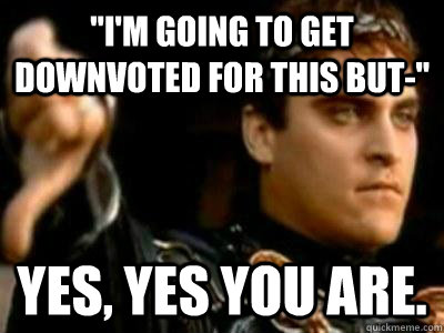"I'm going to get downvoted for this but-" Yes, yes you are.