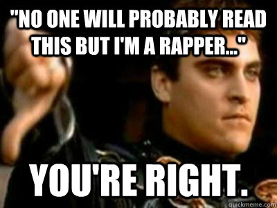 "No one will probably read this but I'm a rapper..." You're right.