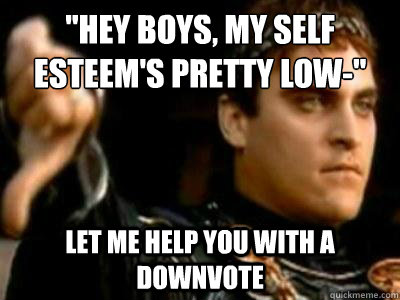 "Hey Boys, my self esteem's pretty low-" Let me help you with a downvote