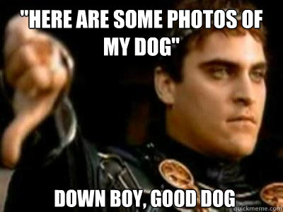 "here are some photos of my dog" Down boy, good dog