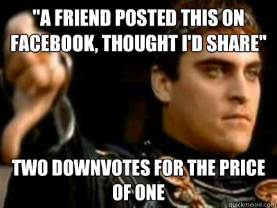 "A friend posted this on facebook, thought I'd share" two downvotes for the price of one
