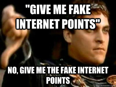 "Give me fake internet points" NO, give me the fake internet points