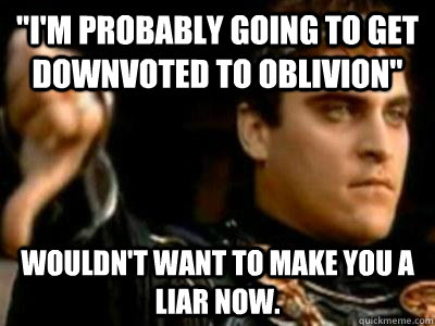 "I'm probably going to get downvoted to oblivion" Wouldn't want to make you a liar now.