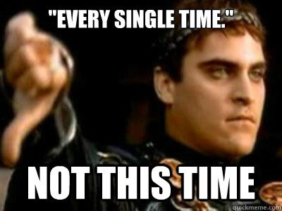 "Every single time." Not this time