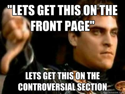 "lets get this on the front page" lets get this on the controversial section