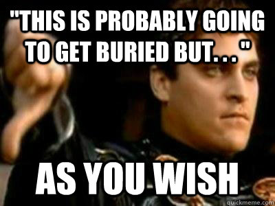 "This is probably going to get buried but. . . " AS you wish