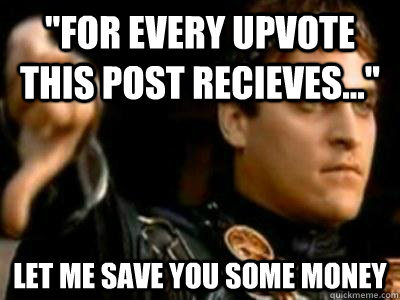 "For every upvote this post recieves..." Let me save you some money