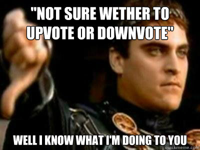"not sure wether to upvote or downvote" Well I know what I'm doing to you
