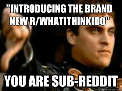 "Introducing the brand new r/WhatIthinkIdo" you are SUB-reddit