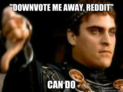 "Downvote me away, reddit" CAN DO