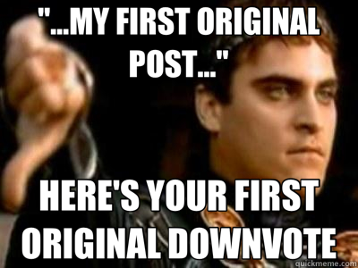 "...MY FIRST ORIGINAL POST..." HERE'S YOUR FIRST ORIGINAL DOWNVOTE