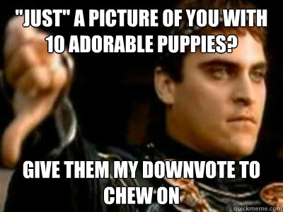 "Just" a picture of you with 10 adorable puppies? GIve them my downvote to chew on