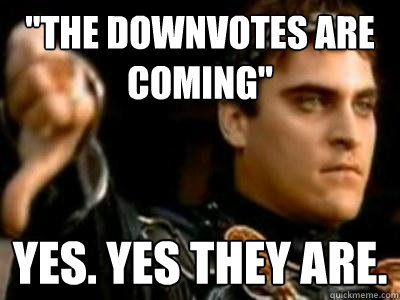 "The downvotes are coming" yes. yes they are.